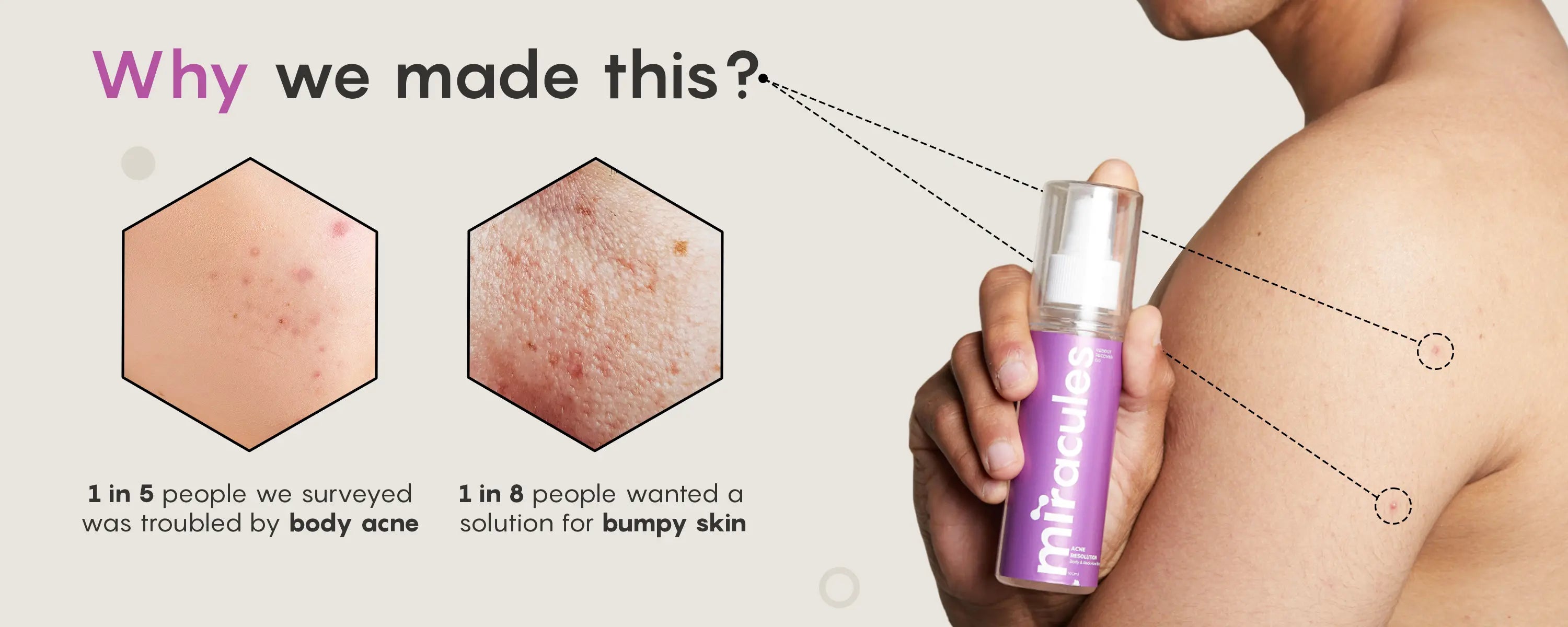It fights bumpy texture, acne marks & acne all over your body. You can apply it to your back, butt, thighs, chest and even use it to prevent ingrown hair.