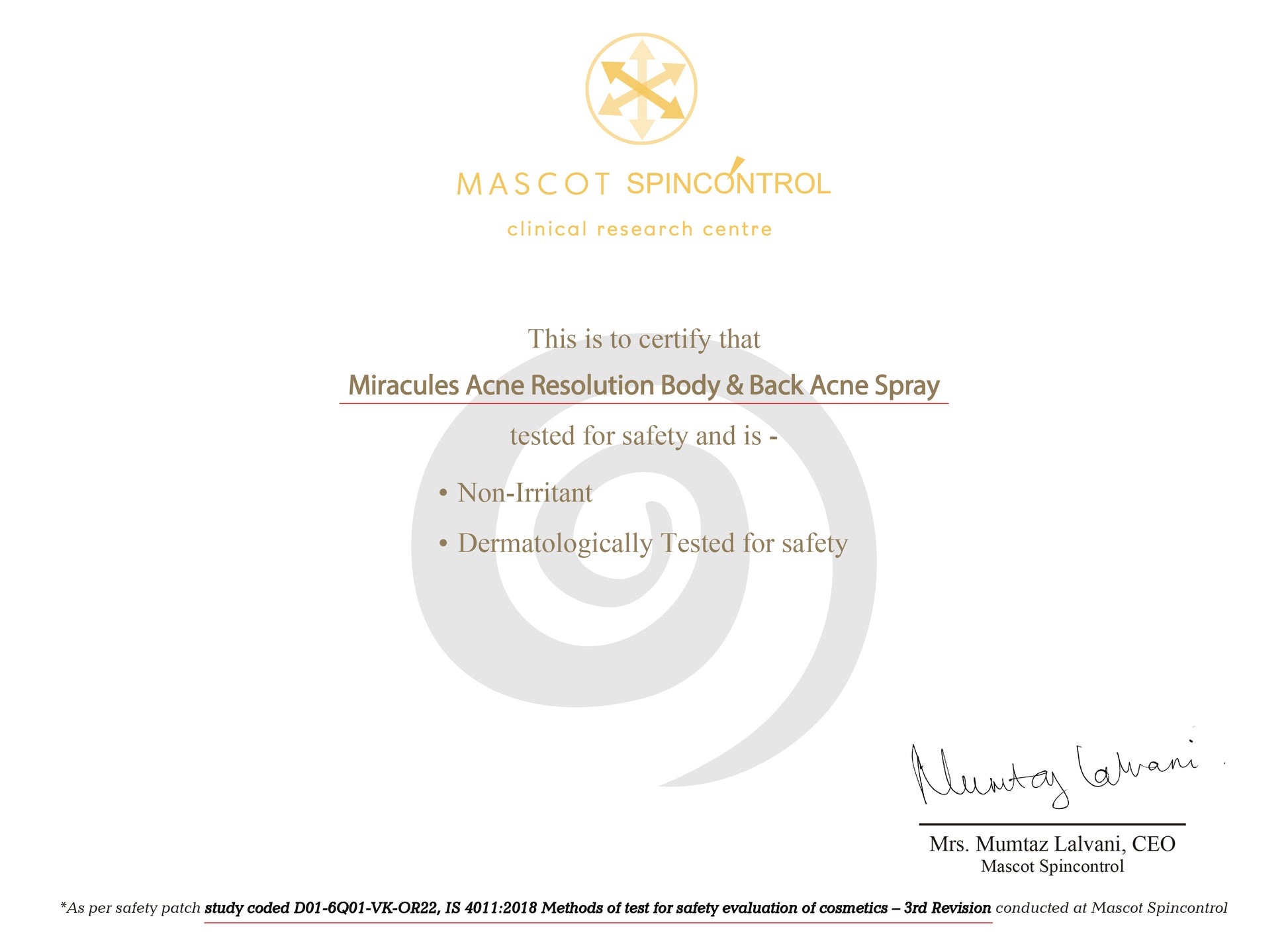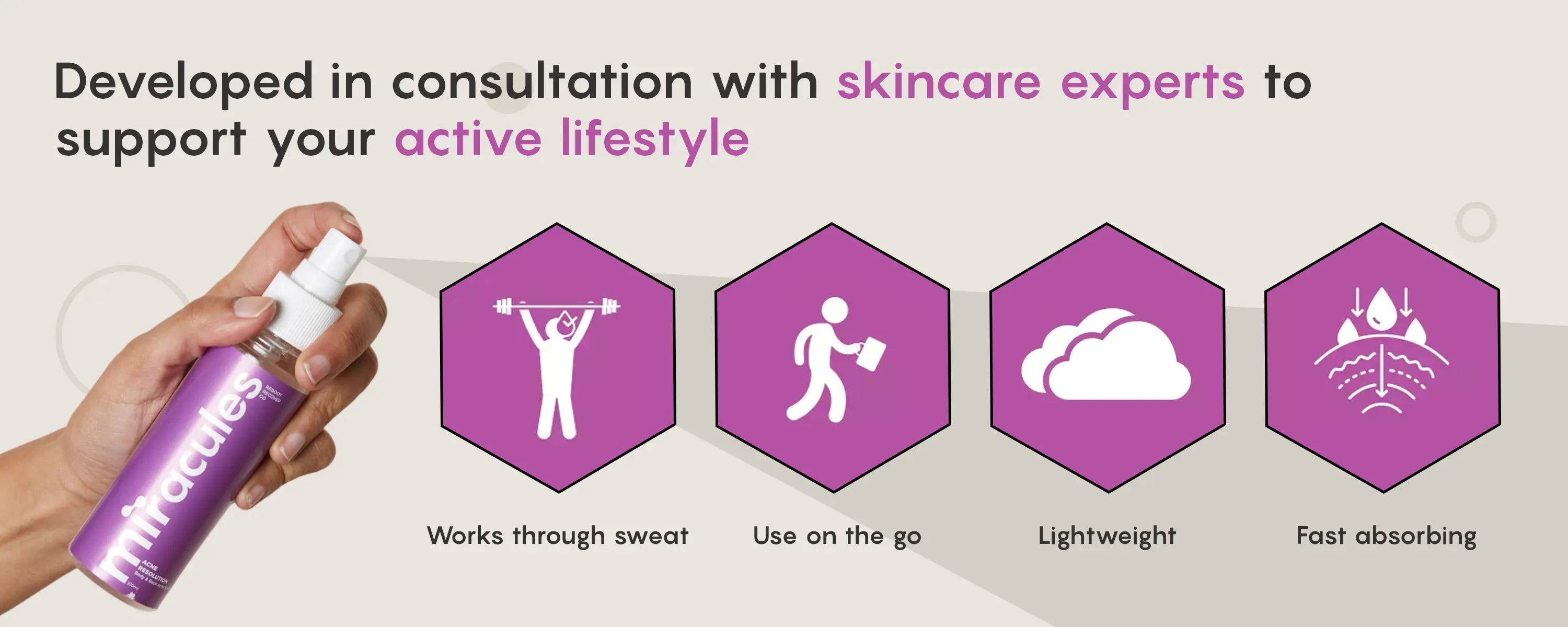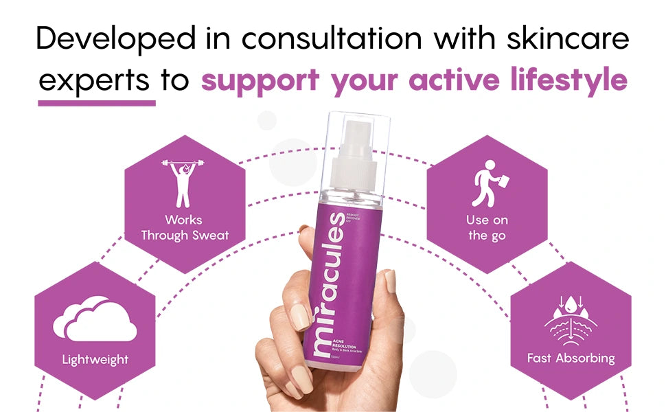 Spray a generous amount over the clean acne-affected areas. Wait for about 60 seconds before getting dressed or covering up the treated area.