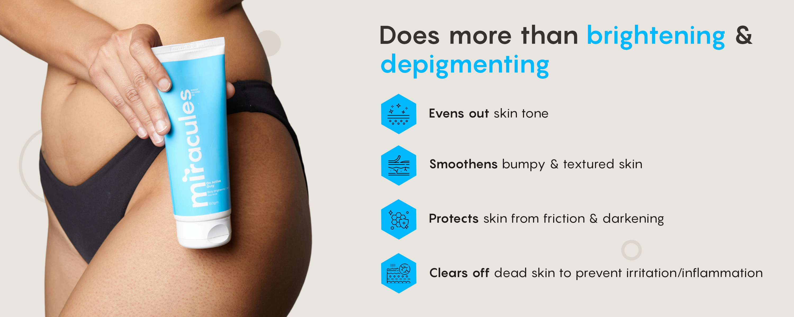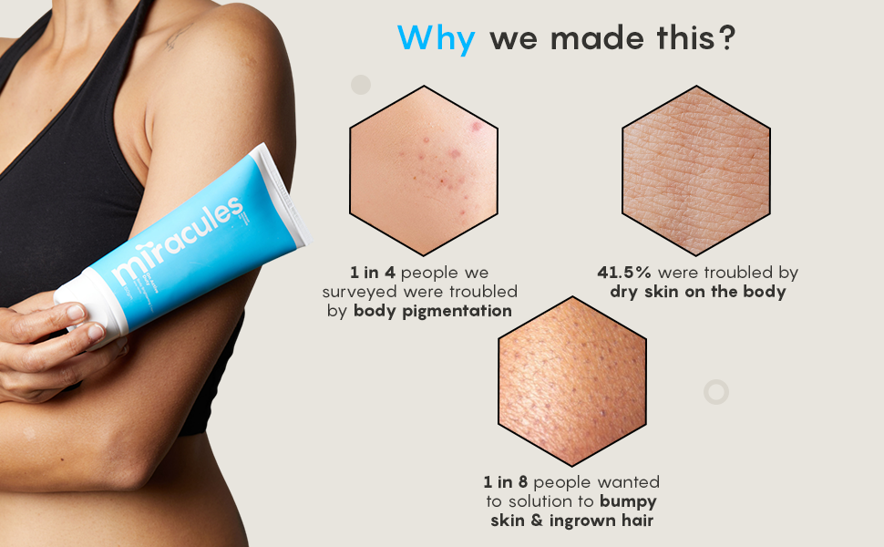 3. Skin smoothening & exfoliating: Exfoliating the body is a great way to get rid of textured/bumpy skin along with lightening sunspots and red spots.