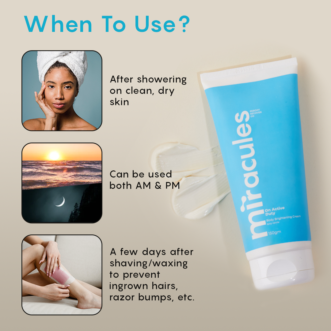 Take a generous amount and apply it all over your body on clean/after-shower skin. Use daily (preferably twice) for soft, supple skin & that post-workout-glow all day.