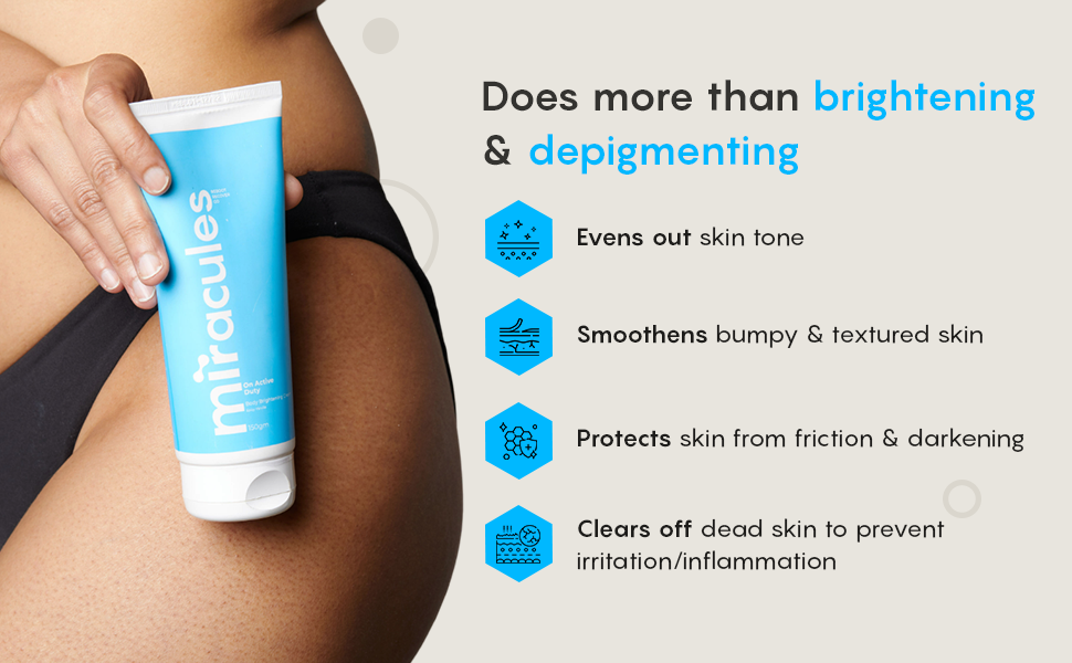 In addition to brightening & depigmenting, On Active Duty exfoliates, soothes, & protects your skin from irritation cause by friction. It also reduces razor bumps, ingrown hair & strawberry skin.