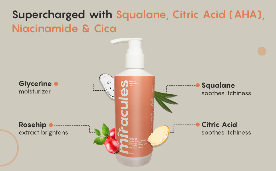 Rosehip extract is anti-inflammatory in nature, so it calms down the redness and itchiness of the chaffed/scratched/compromised skin. It helps reduce your inflammatory acne, get rid of acne scars, and clear your skin. It works to repair & brighten the skin.